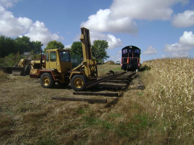 A short section of GSRM's siding was built to unload the waycar and box car and NSP 4 was placed on a short section of track about 75 yards east and perpendicular to the siding where it was easier to maneuver the semi-truck and trailer.