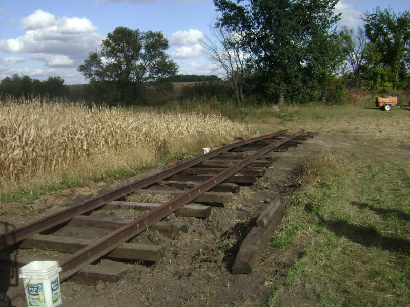 In the spirit of an old logging railroad, ties and rail were laid right on the ground. A sharp curve was required to reach an alignment with the siding.